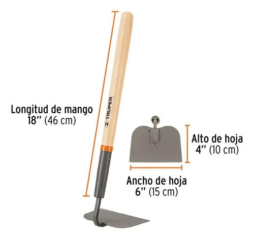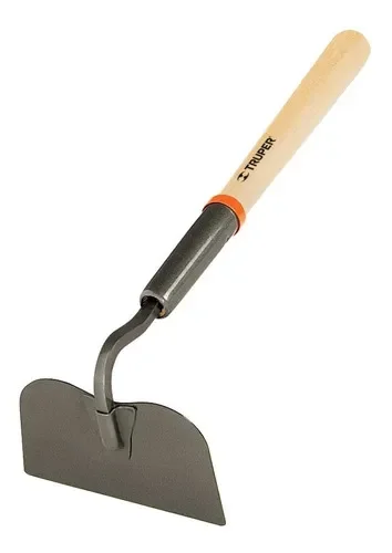 Azadón tomatero de hoja corta con mango. Herramienta esencial para huertos.