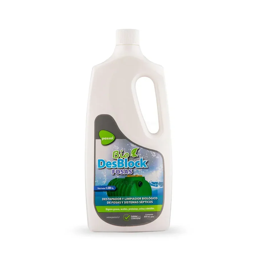 Bio Desblock para fosas sépticas 950ml. Eliminación natural de obstrucciones.