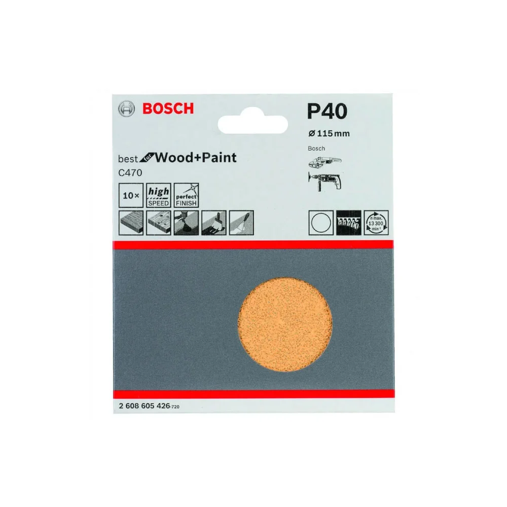 Pack de 10 lijas de 4 ½″ grano P40, perfectas para desbaste de madera y superficies rústicas. Alta durabilidad y eficiencia en tareas de carpintería y restauración.