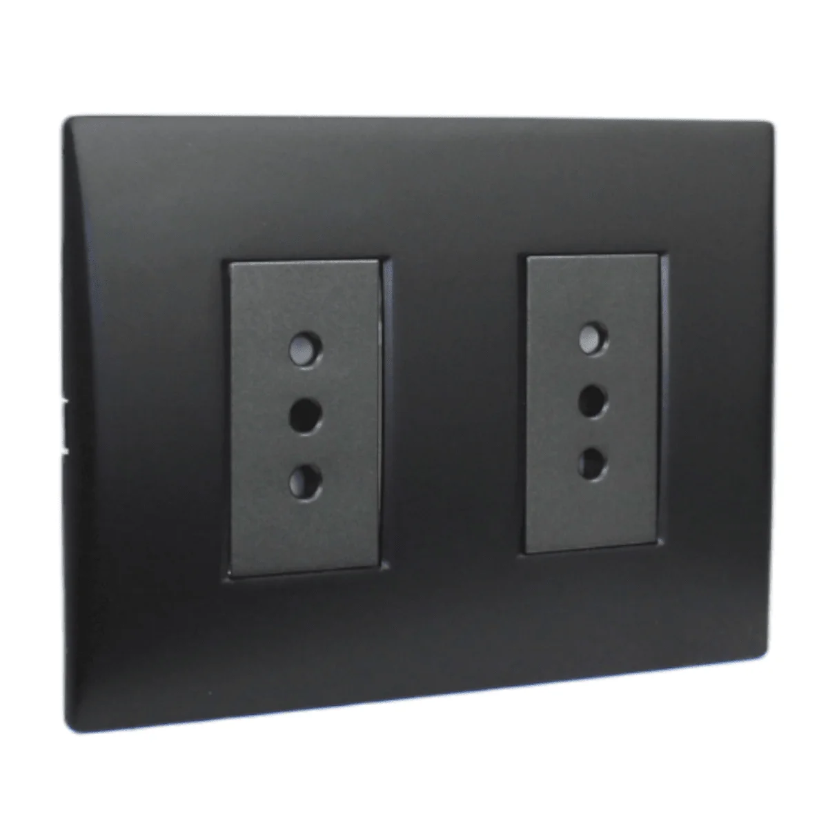 Toma doble 10A negro, ideal para instalaciones discretas.